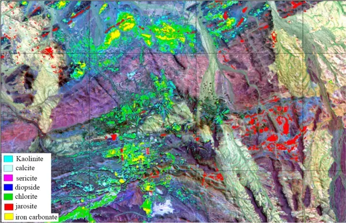 - شناسایی دگرسانیهای هیدروترمال: مناطق آلتراسیون معدنی، یکی از شاخصترین نشانهها برای اکتشاف منابع فلزی مانند مس و طلا هستند. با بهرهگیری از دادههای ماهوارهای میتوان این مناطق را بهصورت منطقهای مشخص کرد.