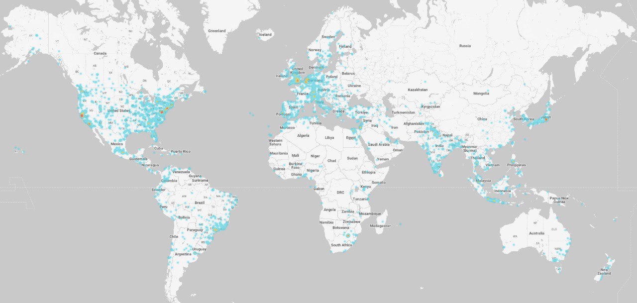 بازار کار این رشته در کشورهای اروپایی و امریکایی بهتر از چین و روسیه میباشد ( این نقشه پراکندگی متخصصان Google earth engine است که ب خوبی این امر را اثبات میکند)
